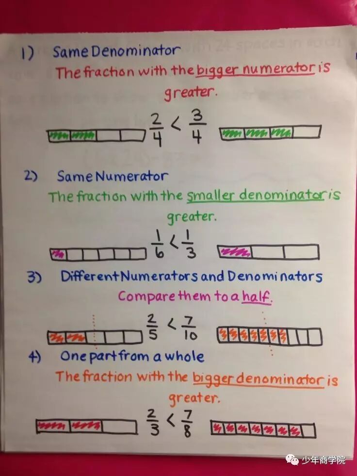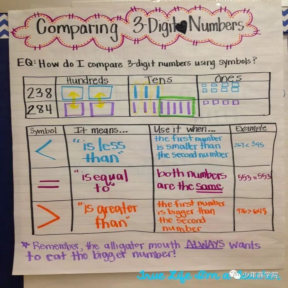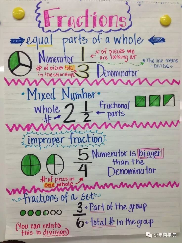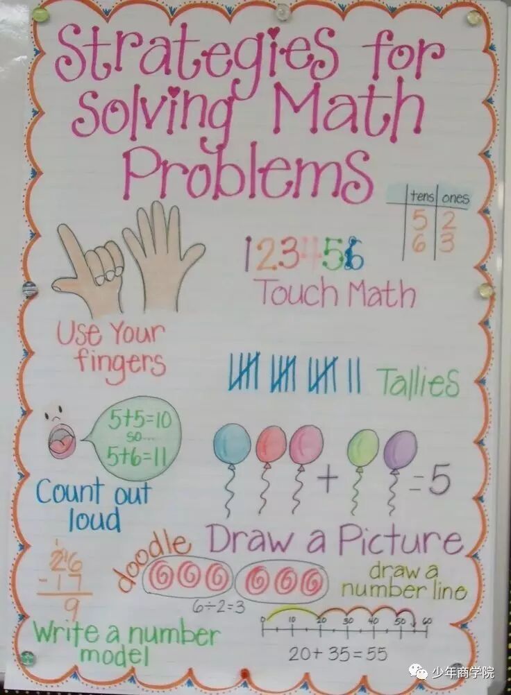 因此,要让孩子爱上数学,真正具备数学思维,应该把焦点往回拉,不急于刷题应用,而把更多时间花在搞懂最基本的概念上。我们曾介绍过将抽象知识轻松掌握的“Anchor Chart(锚图笔记法)”,当时是运用到了阅读上(《孩子快速阅读可能弊大于利,看看美国孩子青睐的精读方法吧》),今天我们分享下篇,它同样是帮助孩子学好数学的绝佳工具之一。