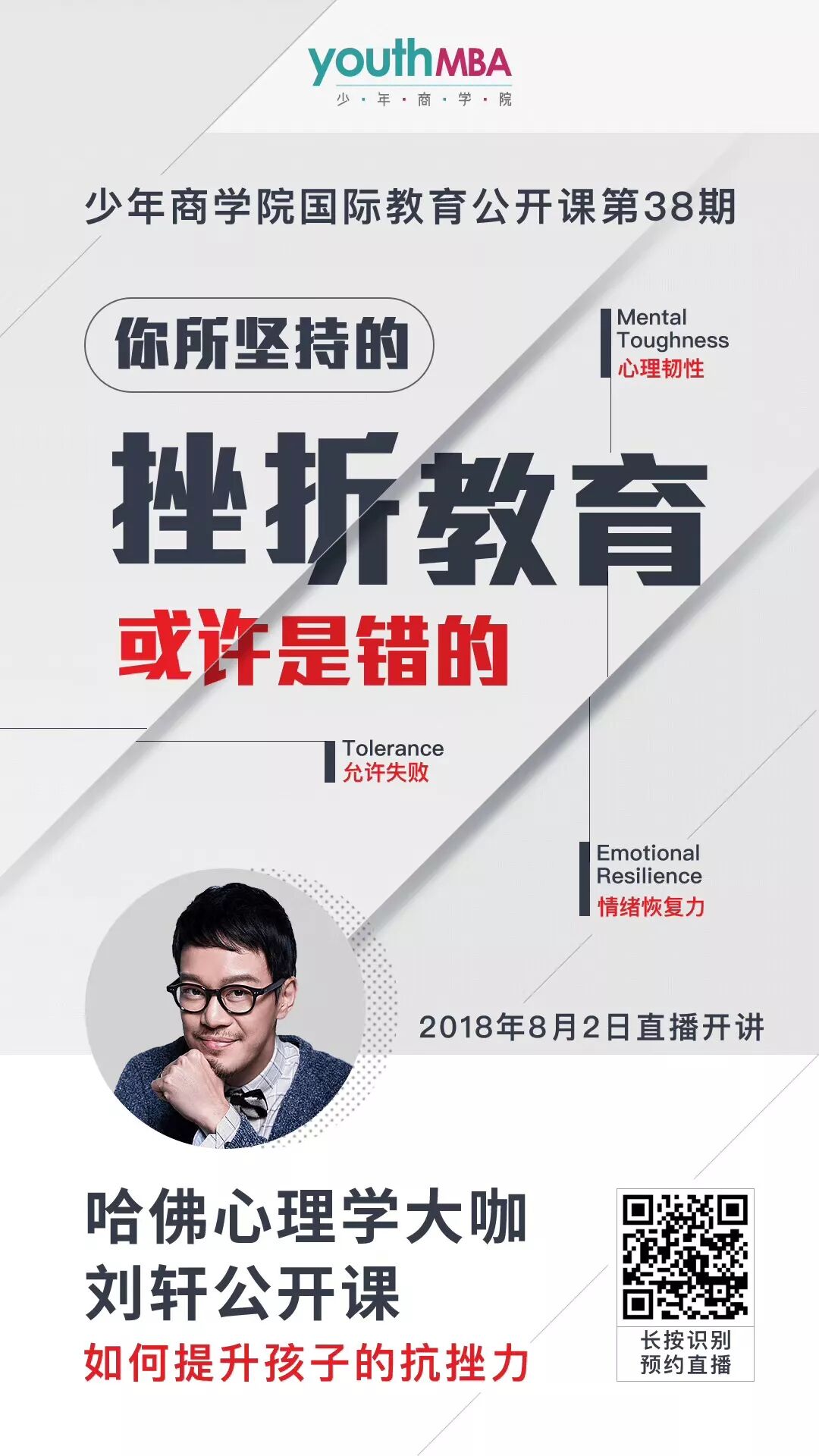 以下文章,摘选自哈佛心理学博士候选人、《我是演说家》全国总冠军、著名作家刘轩受邀在少年商学院国际教育公开课上的分享(长按识别下图二维码可以收听公开课音频回放)。他也是两个孩子的父亲,以及另一个身份——著名作家刘墉之子。希望对大家有所启发,请多分享,或“留言”分享高见。