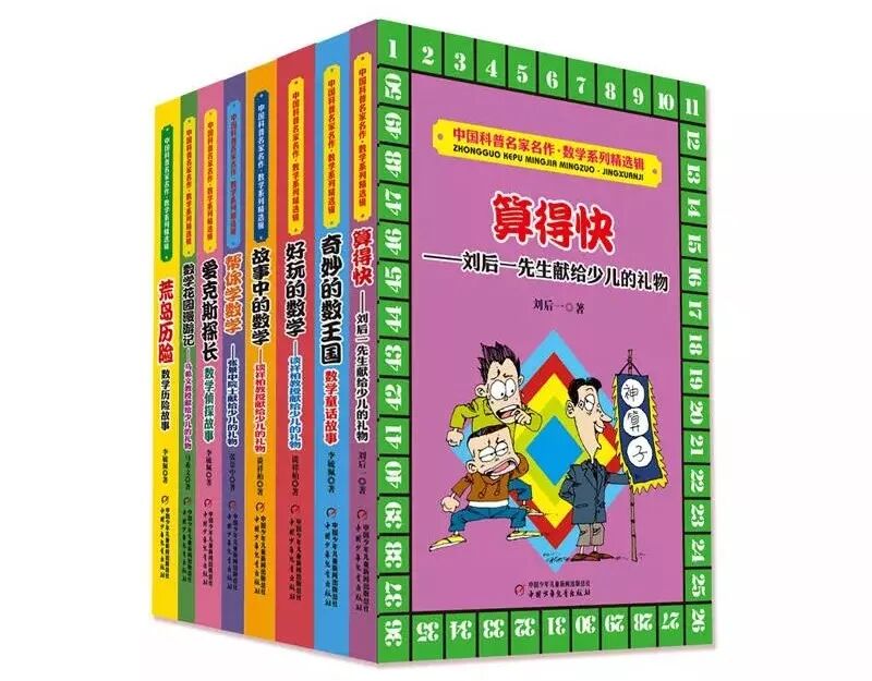 这个系列是目前国内数学少儿科普市场上口碑较好的一套优质读物。包括:刘后一的《算得快》、马希文的《数学花园漫游记》、李毓佩的《奇妙的数王国》、《爱克斯探长》、《荒岛历险》、谈祥柏的《故事中的数学》、好玩的数学》、张景中的《帮你学数学》。