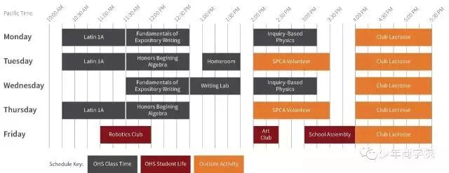 OHS规定,每个孩子每年最多只能选6门课。因为这些课程,不只是吸收知识那么简单,还有师生答疑、同学讨论——这部分每天要花1-3小时,完成作业再花2-3个小时,一个特别认真的学生,一周下来的课业学习时间,就要达到40-50个小时。