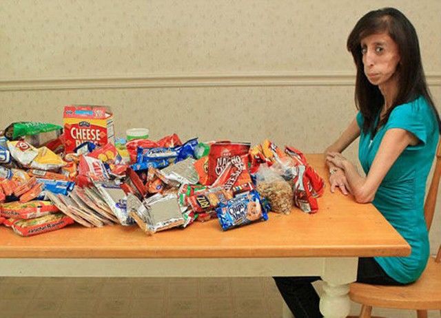 有一位小女孩,名字叫Lizzie,被人称作是“零脂肪女孩”—因为她很不幸的得了一种非常罕见的病,就是身体不吸收和储藏一点点脂肪,为了维持生命,她必须每隔15分钟就吃一顿饭,每天要吃60顿才能活下去。