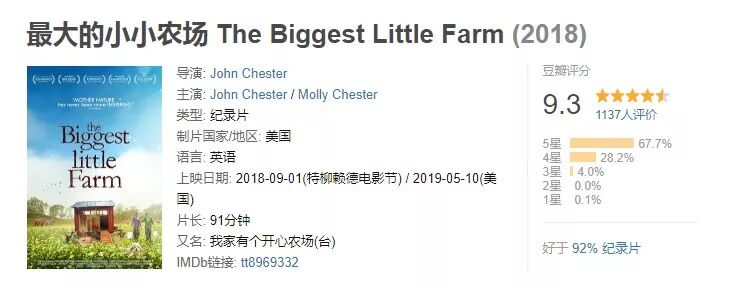 今天给大家分享的这部纪录片《最大的小小农场》(The Biggest Little Farm),讲述的就是约翰与莫莉这对夫妻合力打造了一个童话般的、与自然完全和谐共处的农场。