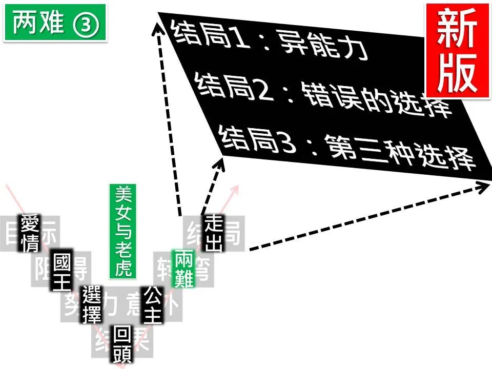 第一个问题:主人翁的「目标」是什么? 第二个问题:他的「阻碍」是什么? 第三个问题:他如何「努力」? 第四个问题:「结果」如何?(通常是不好的结果) 第五个问题:如果结果不理想,代表努力无效,那么,有超越努力的「意外」可以改变这一切吗? 第六个问题:意外发生,情节会如何「转弯」? 第七个问题:最后的「结局」是什么?