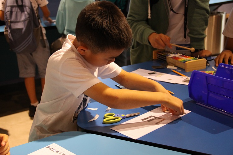 “剪出不同形状和长度的锡箔纸,贴在纸卷上后,交给我。”一位向导发下来一些锡箔纸和剪刀,“通过控制纸的形状和长度,加上电击,我们就能听到美妙的音乐了。”