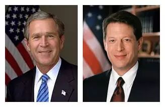 (左边是共和党候选人小布什,右边是民主党候选人戈尔。)