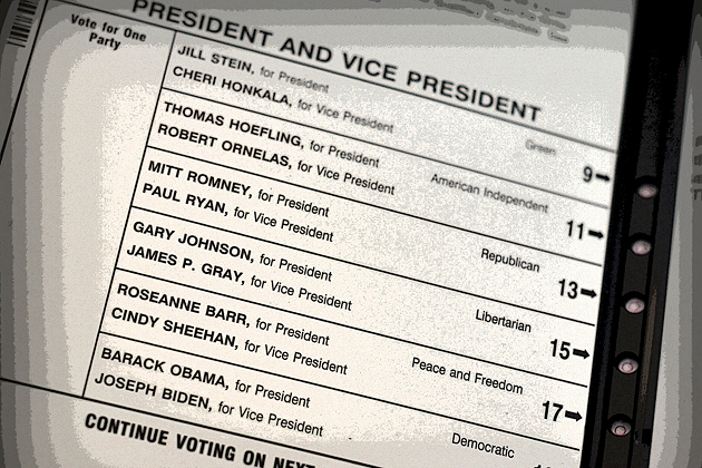 (投票得在选票上的小孔做标记,一个候选人一个孔)