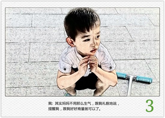 真没想到他反应这么快,我就回答他当然可以当喽!你认为我做哪些事是你不喜欢的呢?他思考了片刻,声音放缓回答:“就是每次妈妈不要老催我!”