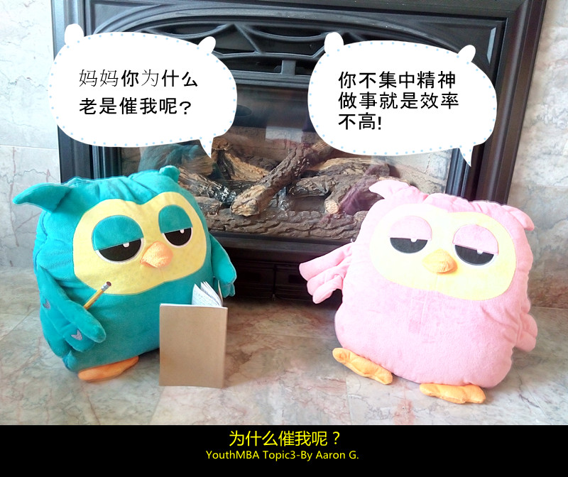妈:首先,你要明白学习是为你自己的将来做准备,为自己学的。当你集中精力做事时,你能更快得做完它。其次,我答应你,你快快完成事情所省得的时间是你的自由活动玩耍的时间。