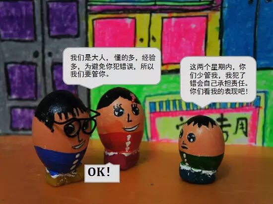 我们经过讨论,一致决定,在接下来的2周内他们尽量少唠叨,给我犯错误的自由,我犯了错会自己承担责任。看我的表现吧!