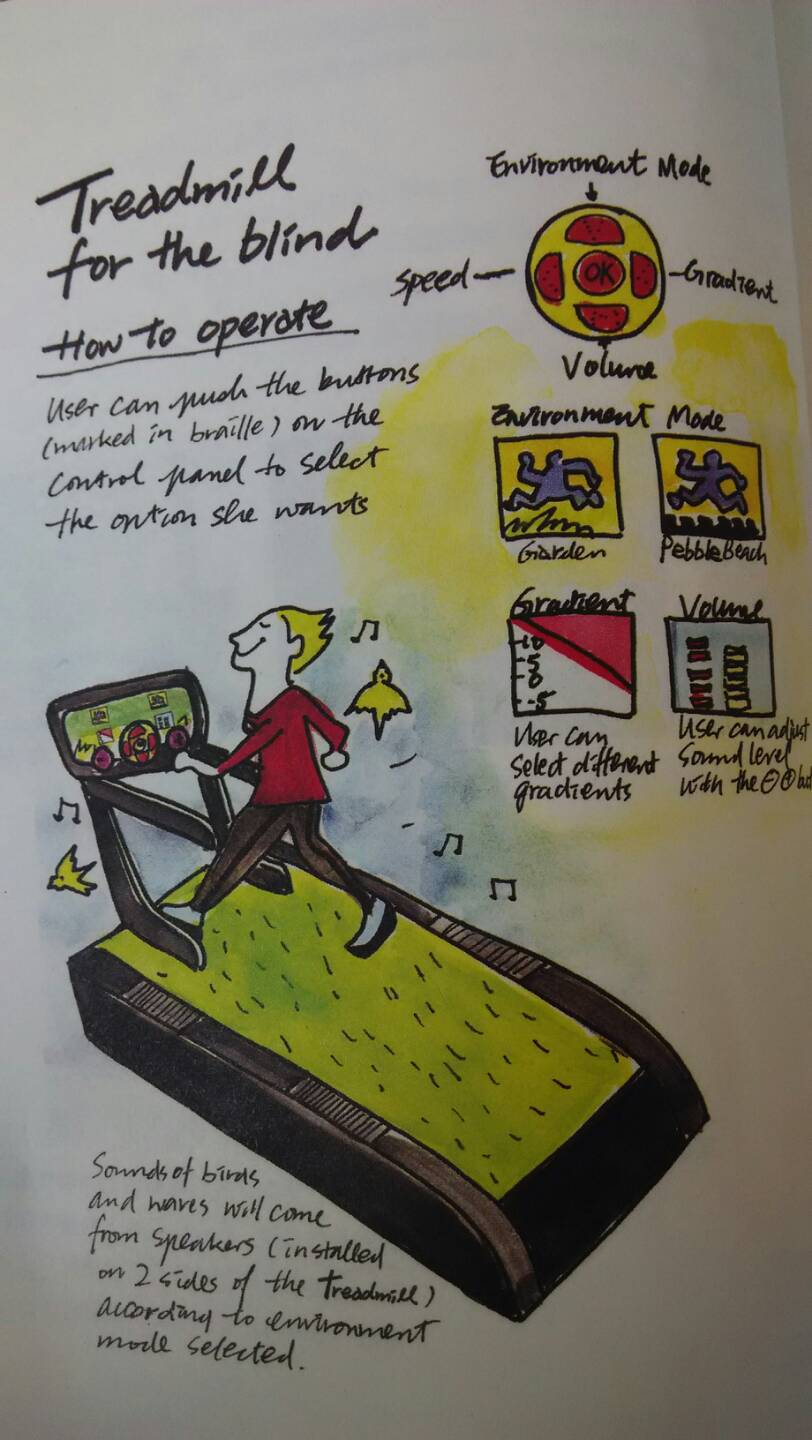 KevinChan(设计学士)的“盲人用的跑步机”:提供了一个安全的跑步地带,模仿户外的情景,但没有为他们提供人际社交活动。