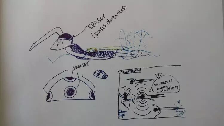 另一个学生小组的作品——“水中导航系统”:让盲人游泳更为安全,通过人际活动增加他们的休闲体验。这个设计体察了视力受损者的社交需求。